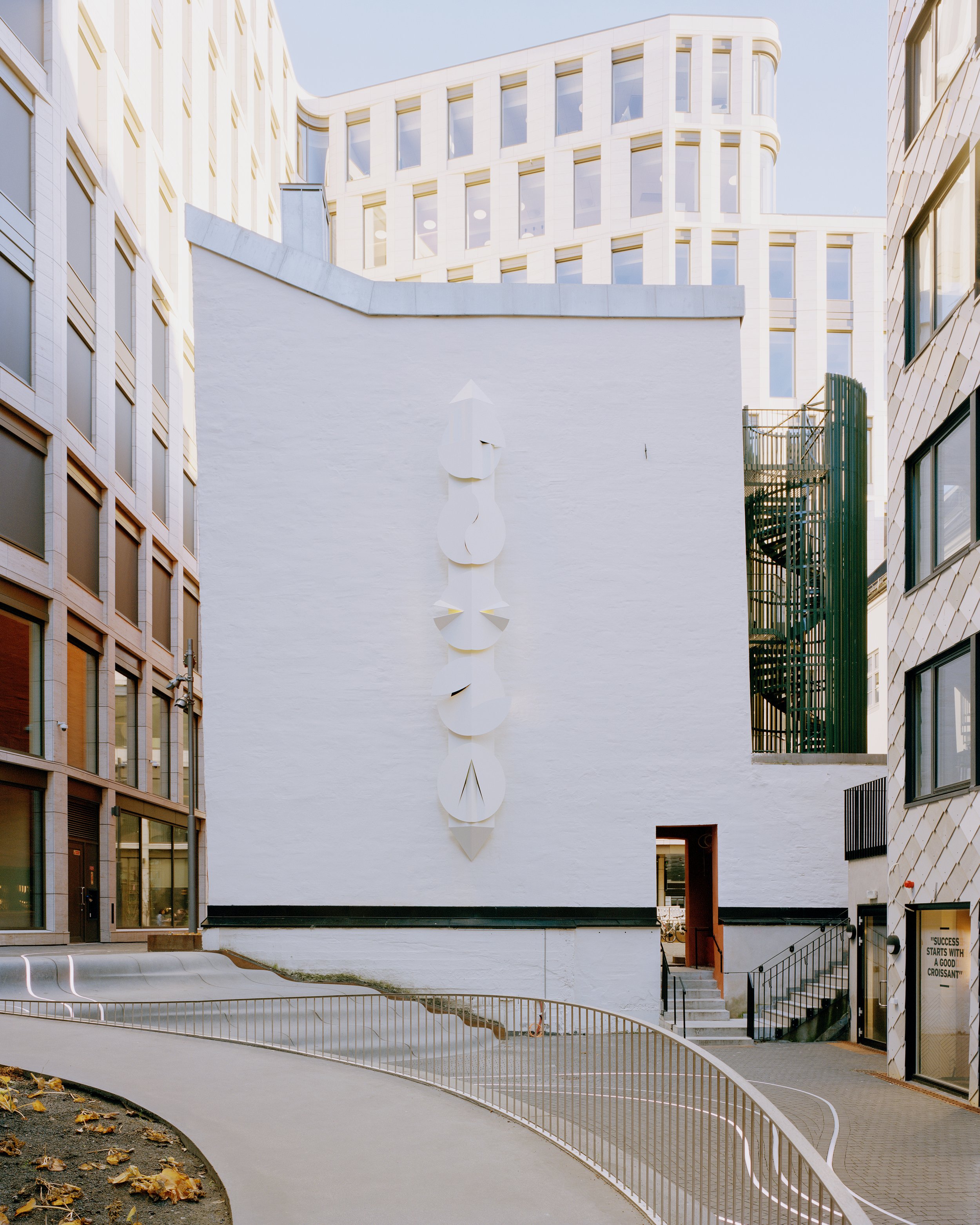 As part of their large-scale light design for Tullinkvartalet in Oslo in 2021, Void invited me to collaborate on a light sculpture for a gable wall - a vertical contrast to the horizontal, flowing lights built in among the cobble stones of these backyard allies.