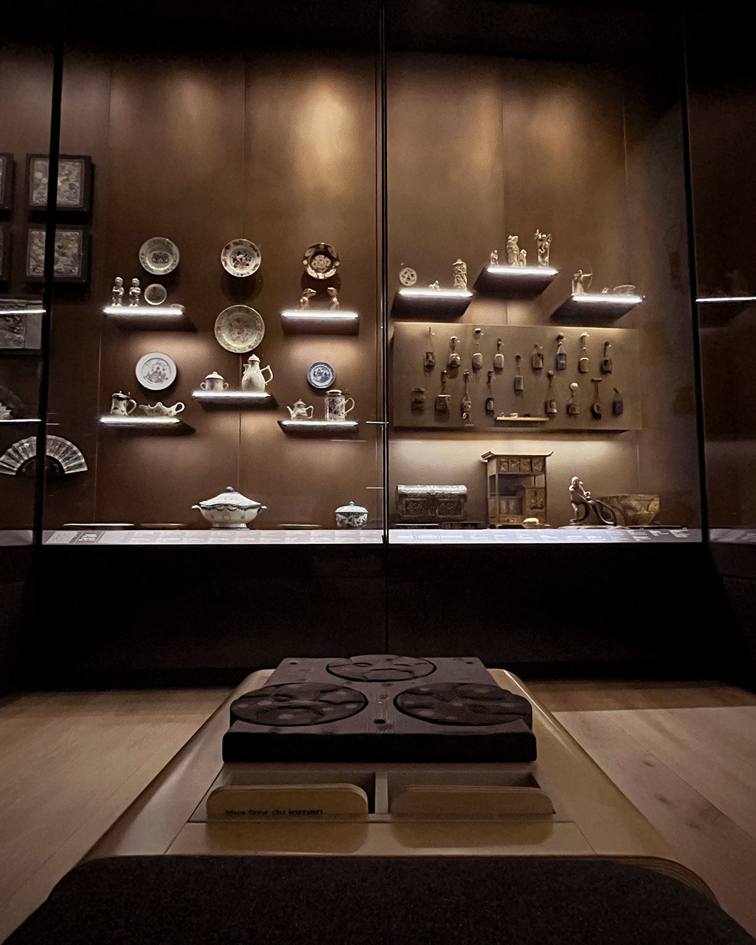 Throughout the National Museum of Art in Oslo, there are benches for the visitors to rest, view the works and, if willing, interact with small objects - usually placed in a square box at the end of the bench. They can be relating to the art on display, or do their own thing.
